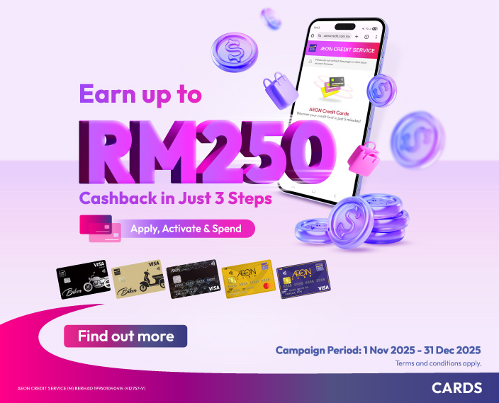 That’s right, with every spending from AEON Credit card, you get up to 5% cash backs, collect redeemable points and petrol rebates.