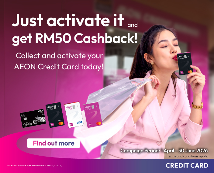 Collect and activate your AEON Credit Card to enjoy RM50 cashback. It’s that easy!