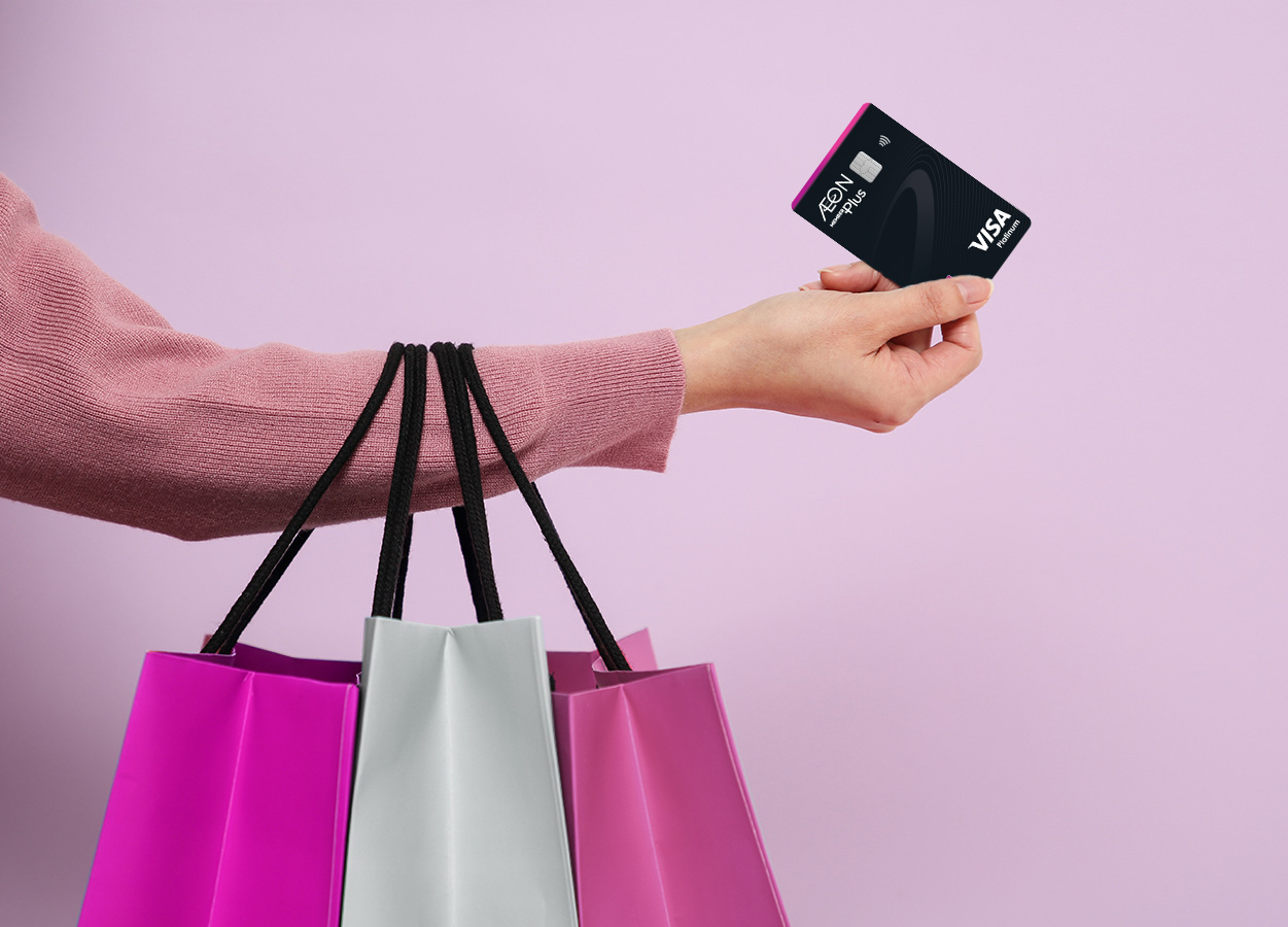 - Tap AEON Member Plus Visa Card at AEON cashiers.