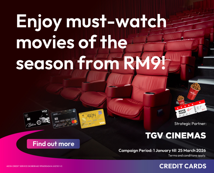 Enjoy every blockbuster moment at TGV from only RM9 when you purchase your tickets with AEON Credit Cards. 🍿🎬
