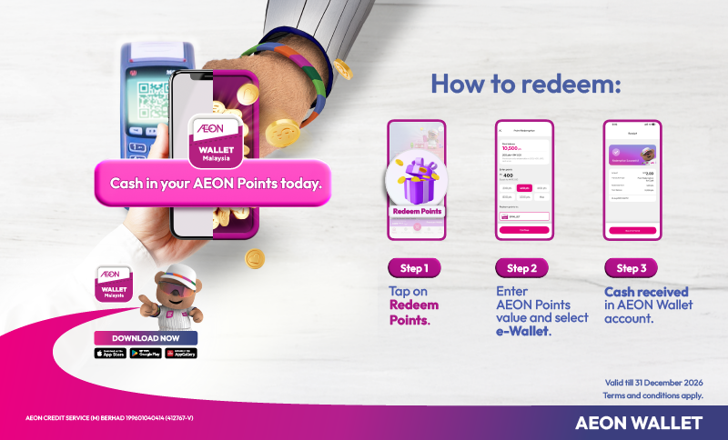 Now, you can easily redeem your AEON Points in two ways: Redeem as Cash into AEON Wallet account: Redeem as…