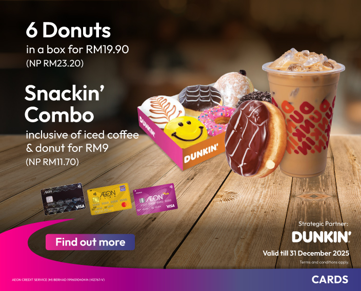 Enjoy one complimentary drink or dessert (valued at RM8.80 – RM11.80) with every minimum spend of RM30 |