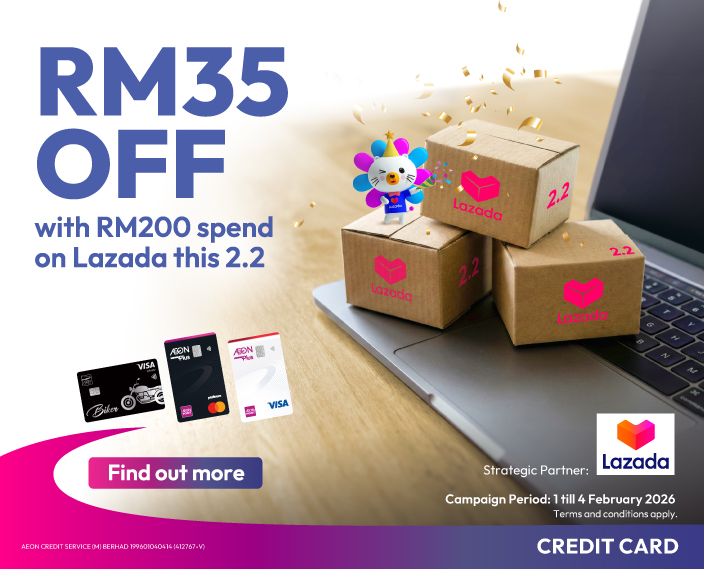 AEON Credit Cardholders, it’s time to collect ong. Spend RM200 and enjoy RM35 OFF when you pay with your AEON Credit Card at Lazada this February for your Chinese New Year shopping! T&Cs apply.