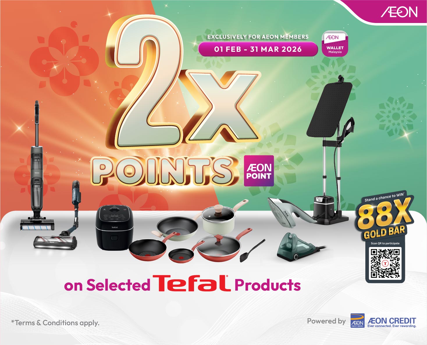 Campaign Period: 01 February – 31 March 2026 Love Tefal? Make cooking and clean-up faster and easier with Tefal. Shop a wide range of Cookware, Appliances, and Kitchenware at AEON Stores and enjoy an exclusive 2X AEON Points booster on selected Tefal products. Offer valid until 31 March 2026. Don’t miss out! Available at all…