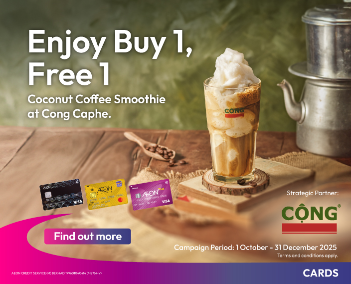 Buy 1 Coconut Coffee Smoothie & get 1 FREE at Cong Caphe when you pay with your AEON Card. 🎉