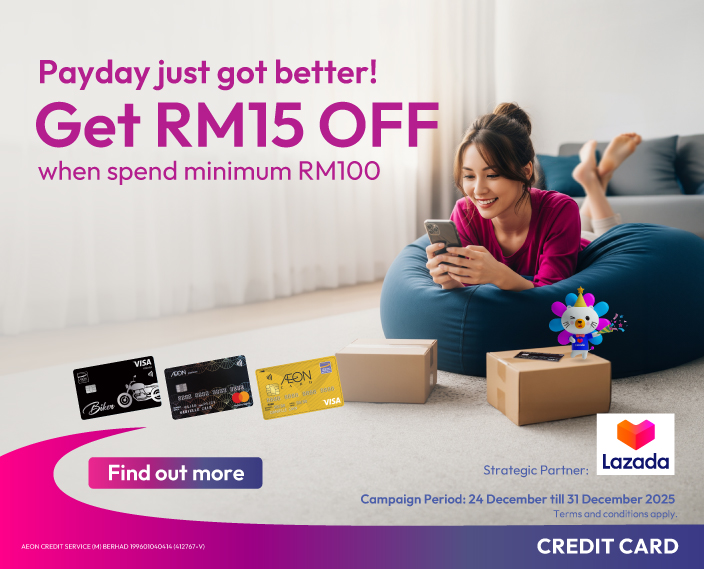 Get RM15 off with a minimum spend of RM100 when you pay with your AEON Credit Card. Add to cart and make it a feel-good haul!